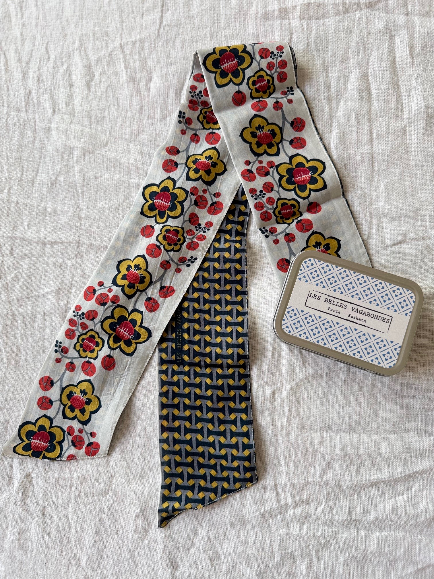 Kaunis, kaksipuolinen, ranskalainen Les Belles Vagabondes huivi. Huivia voi käyttää nutturassa, hiuspantana, solmiona, vyönä, kaulassa, ranteessa, hatussa, laukussa…Vain mielikuvitus on rajana! Kesän ihanin boho-asuste!