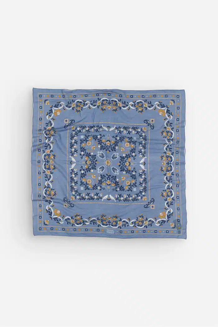 Luonnonpuuvillainen, pehmeä ja hengittävä, Maison Lecomte Flament -huivi. Huivi on ohuen ilmava ja kevyt – täydellinen huolettoman tyylikäs ranskalaisasuste!