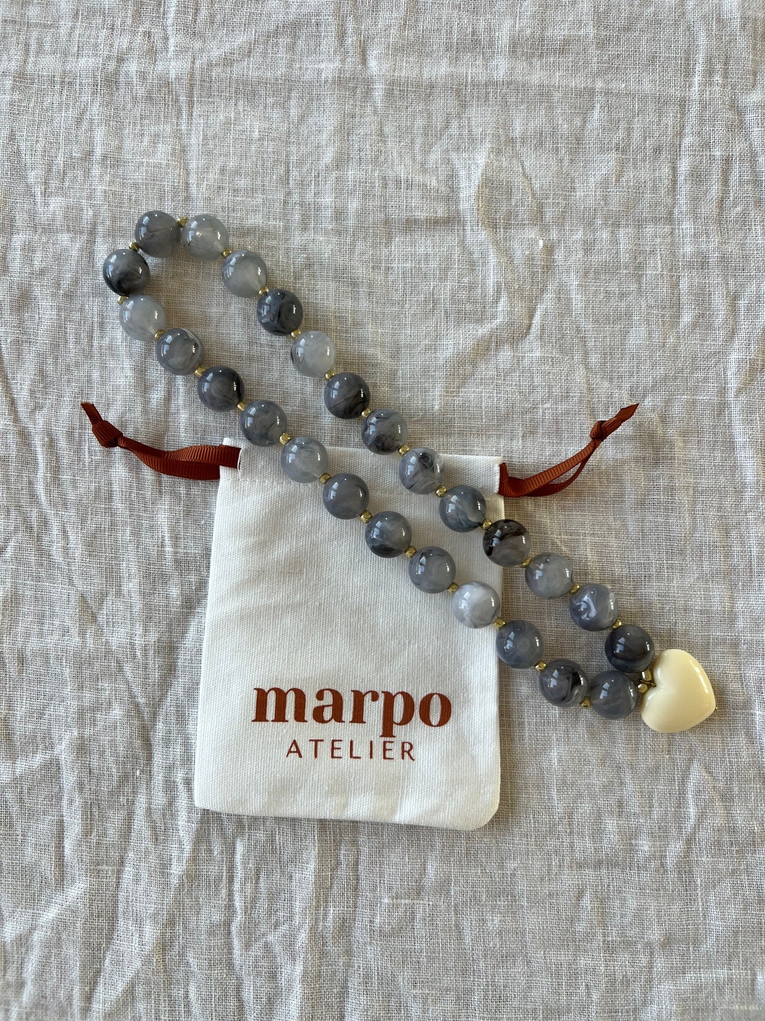 Suloinen ranskalainen Marpo sydänkaulakoru. Venyvä nauha, jonka saa helposti pujotettua kaulaan. Kevyt käyttää. Täydellinen asuste kesään!